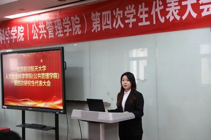 大会最后,党委副书记方志祝贺新一届研究生委员会委员,感谢上一届研究生委员会委员的辛勤付出和取得的丰硕成果。她提出三点希望,一是在未来的学习工作生活中,研究生代表要深入落实为同学服务的宗旨,发挥学校学院与学生之间的桥梁纽带作用,及时关注、反馈和解决同学们的需求和困难。二是研究生代表要认真履职学生代表职责,积极参与学校学院工作,积极为学校学院建言献策。三是研究生代表要充分发挥学生榜样作用,每一个人都是一面旗帜,要传承弘扬空天报国精神和致真为公的情怀,理想高远、创新唯实,为党和国家建设贡献自己的力量。