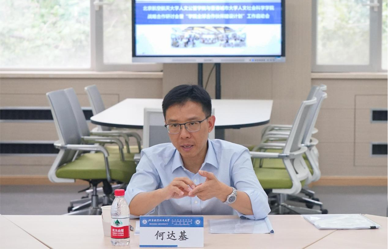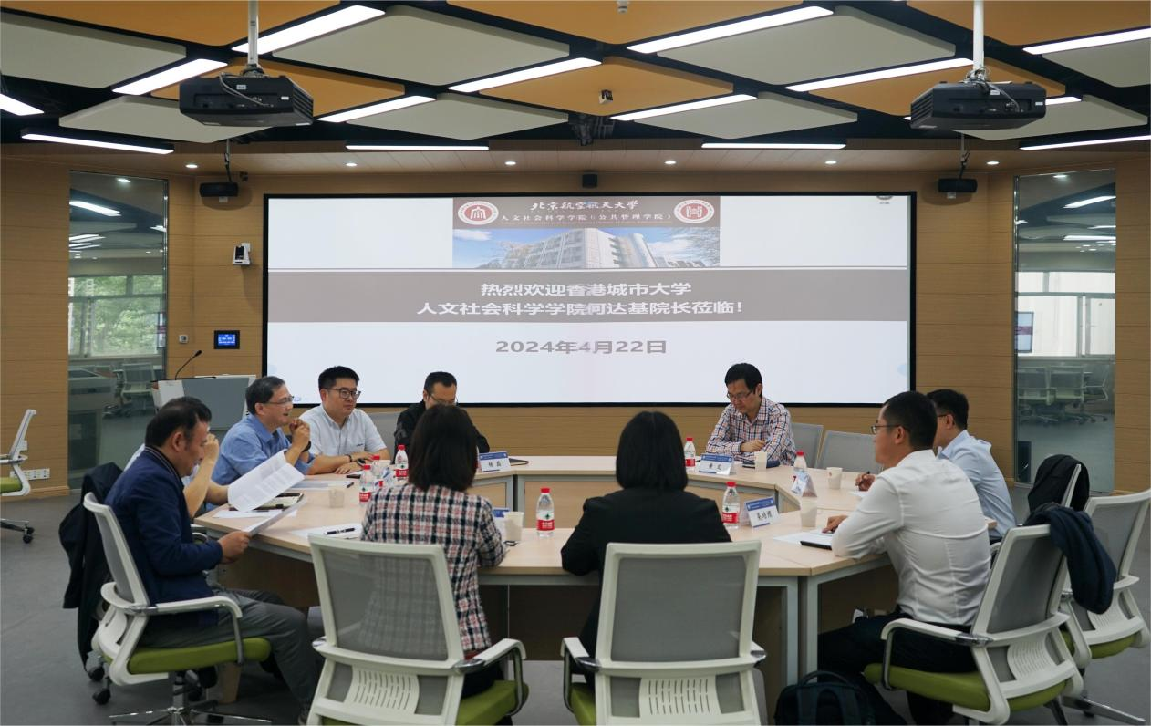 香港城市大学人文社会科学学院何达基院长对我院的热情接待表示感谢,并简要介绍了香港城市大学以及人文社会科学学院的基本情况,希望未来有更多来自北航的优秀本科生、研究生能够到香港城市大学交流和学习,期待双方能够在行为公共管理、应急管理、智库政策研究方面加强合作。