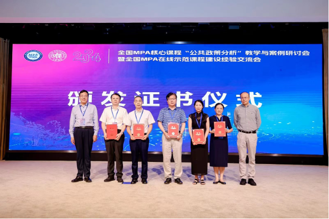 2024年7月6日至7日,由全国公共管理专业学位研究生教育指导委员会主办,复旦大学MPA教育中心承办的2024年全国MPA核心课程“公共政策分析”教学与案例研讨会暨全国MPA在线示范课程建设经验交流会在上海市顺利举办。我院行政管理系主任涂晓芳作为首批全国MPA研究生在线示范课程团队负责人代表受邀参会并做专题报告。