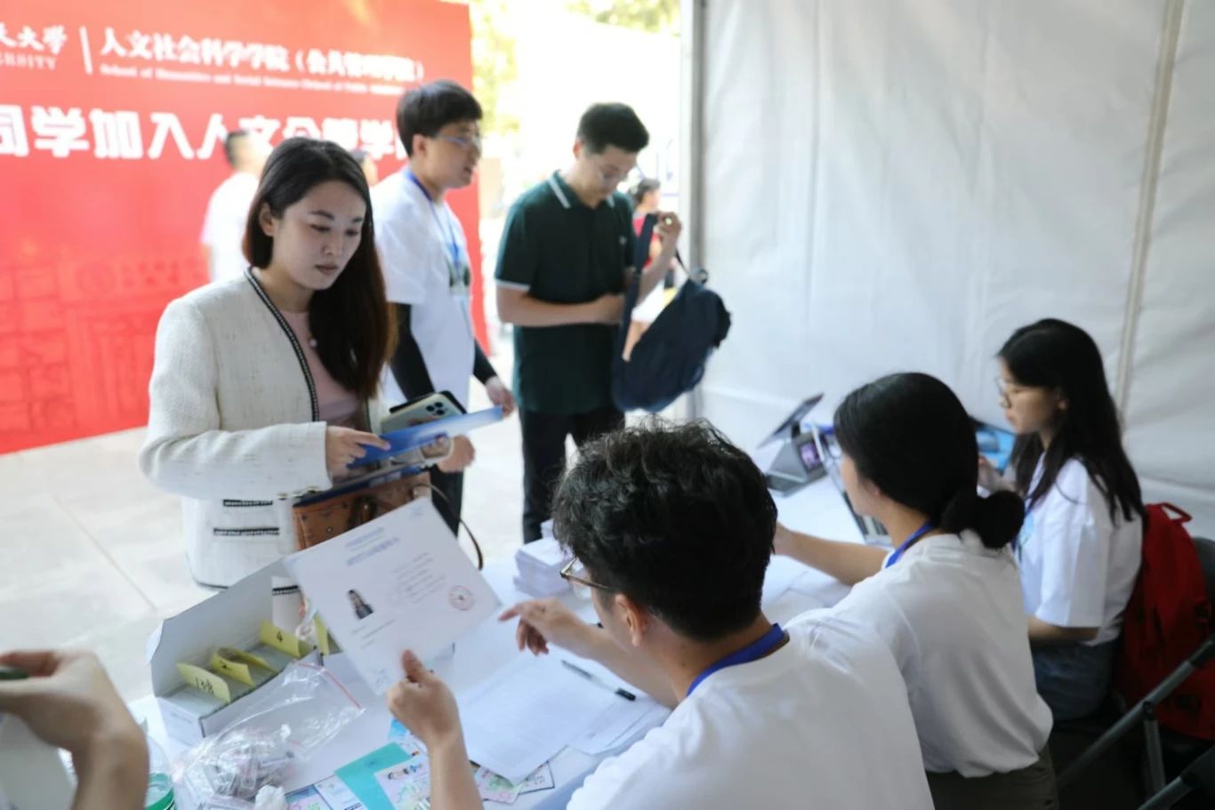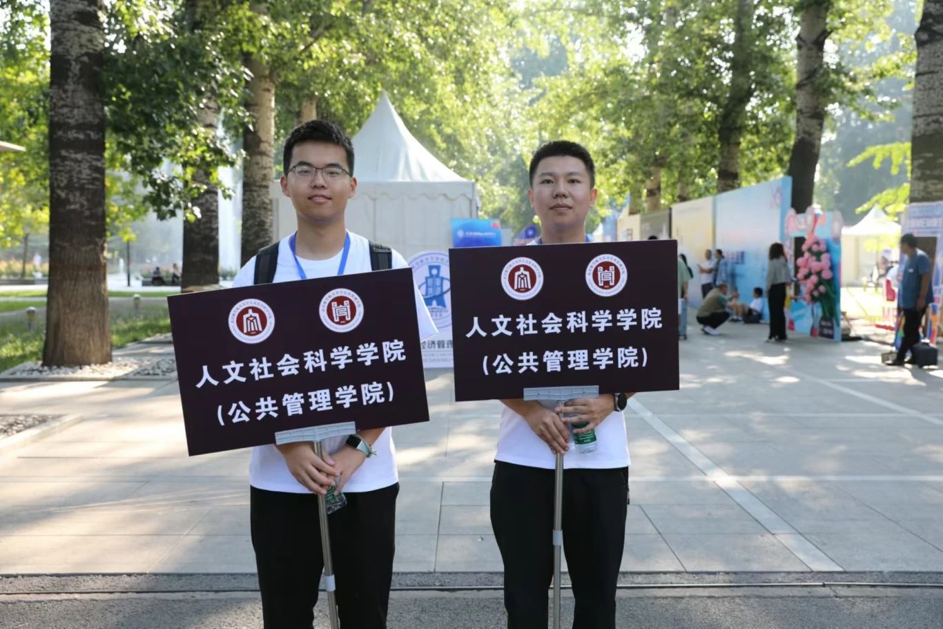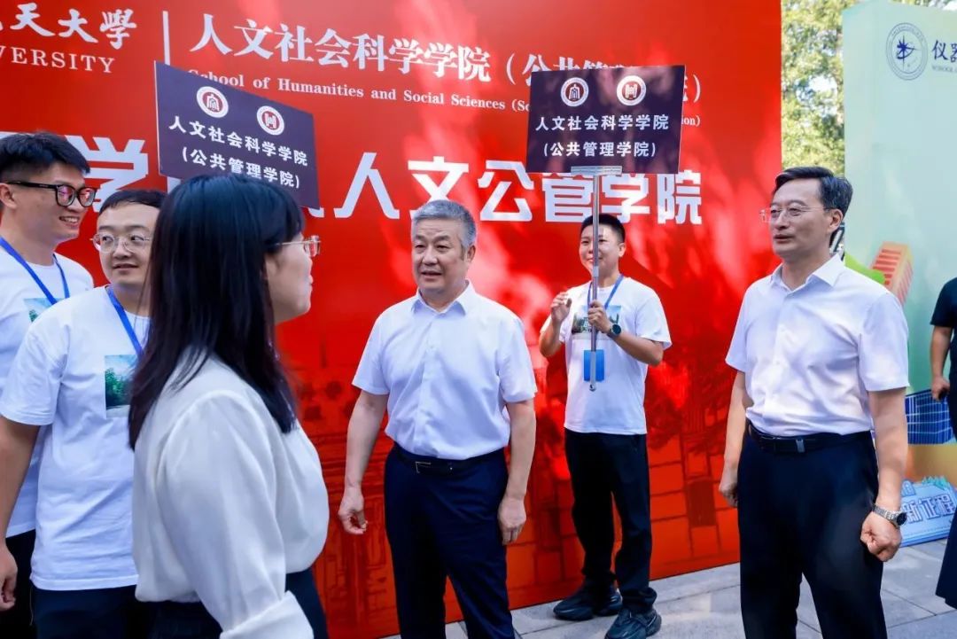 学校党委书记赵长禄、校长王云鹏、副校长邓怡等校领导,人文公管学院院长蔡劲松、副院长詹承豫、副院长陈文博、党委副书记方志等院领导来到迎新现场,与前来报到的研究生新生亲切交流,向他们表示热烈欢迎,并慰问参与迎新工作的师生,详细询问了迎新情况和工作进展。学院领导与研究生新生及志愿者们一起在人文公管学院展板前合影留念。