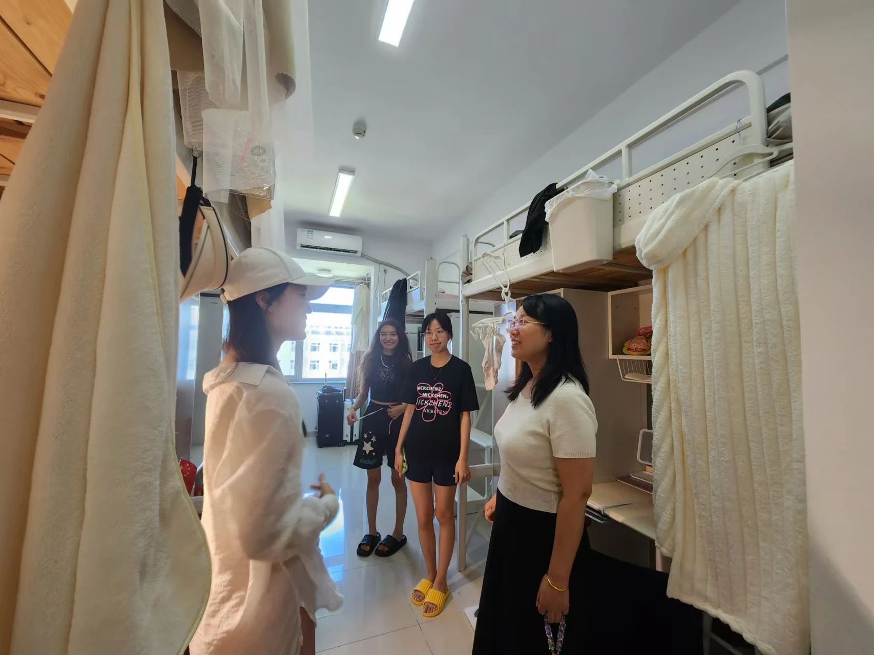 搬迁后,学院党委副书记方志、带班辅导员张子怡走访宿舍,看望慰问同学们,询问和解决同学们的学习生活需求和困难。