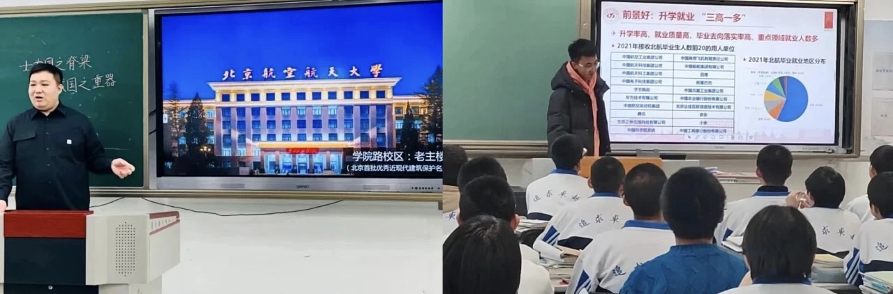 北航内蒙古校友会对内蒙古招生工作给予大力支持。在会长吕霄红、副会长赵鑫磊统筹安排下,内蒙古各地校友配合招生组先后来到鄂尔多斯一中、呼和浩特二中、赤峰红旗中学、包头九中等学校,在沟通宣传、人员保障、物资供应、交通等方面提供大量帮助,有力支持了招生宣传工作的开展。北航校友总会副秘书长黄瑞勇为重点中学开展宣讲。