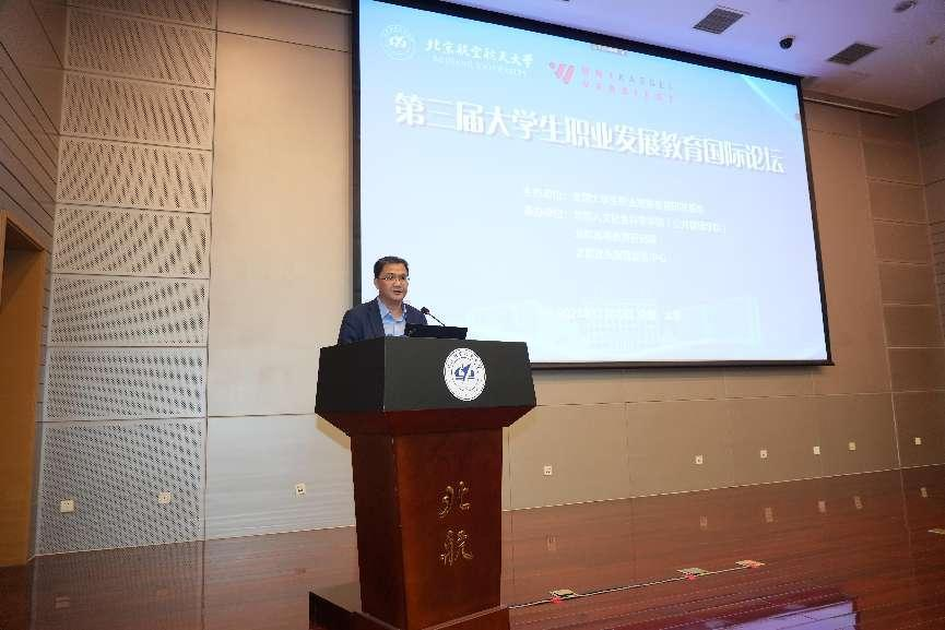 杨洪涛处长代表教育部学生服务与素质发展中心对各位同仁到来表示欢迎和感谢。他指出,自2015年起,北航作为全国大学生职业发展教育研发基地建设的承担单位,取得了很多卓有成效的理论和实践成果。为了促进毕业生高质量充分就业,离不开中国特色就业理论和实践探索,也需要不断向国际传播,展示中国促进青年就业成果,体现中国智慧。尤其经历疫情考验,举办国际会议对于加强国际学术交流打开视野、汇聚资源具有重要意义。