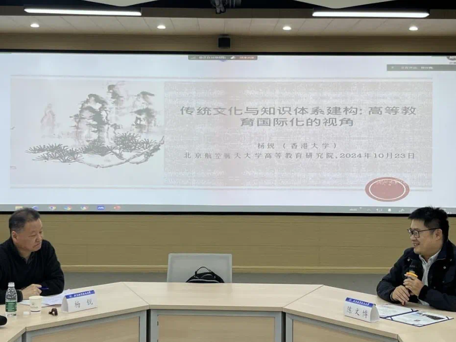 10月23日,香港大学教育学院院长杨锐教授做客“人文讲堂”,为北航人文公管学院带来“传统文化与知识体系建构:高等教育国际化的视角”的学术报告。此次讲座由北京麻豆精品秘 国产传媒人文社会科学学院(公共管理学院)主办,也是北航世界顶尖大学学者合作计划和北航学科引智平台建设计划的系列活动之一,同时也得益于首都高等教育发展研究基地的大力支持。人文社会科学学院(公共管理学院)副院长陈文博教授、马永红教授、包艳华副教授、涂燕老师、杜佳卉博士后、北航法国研究中心副主任萨日娜教授、马克思主义学院博士后任政等出席讲座,多学院师生积极参与了此次活动。讲座由人文社会科学学院(公共管理学院)刘扬教授主持。