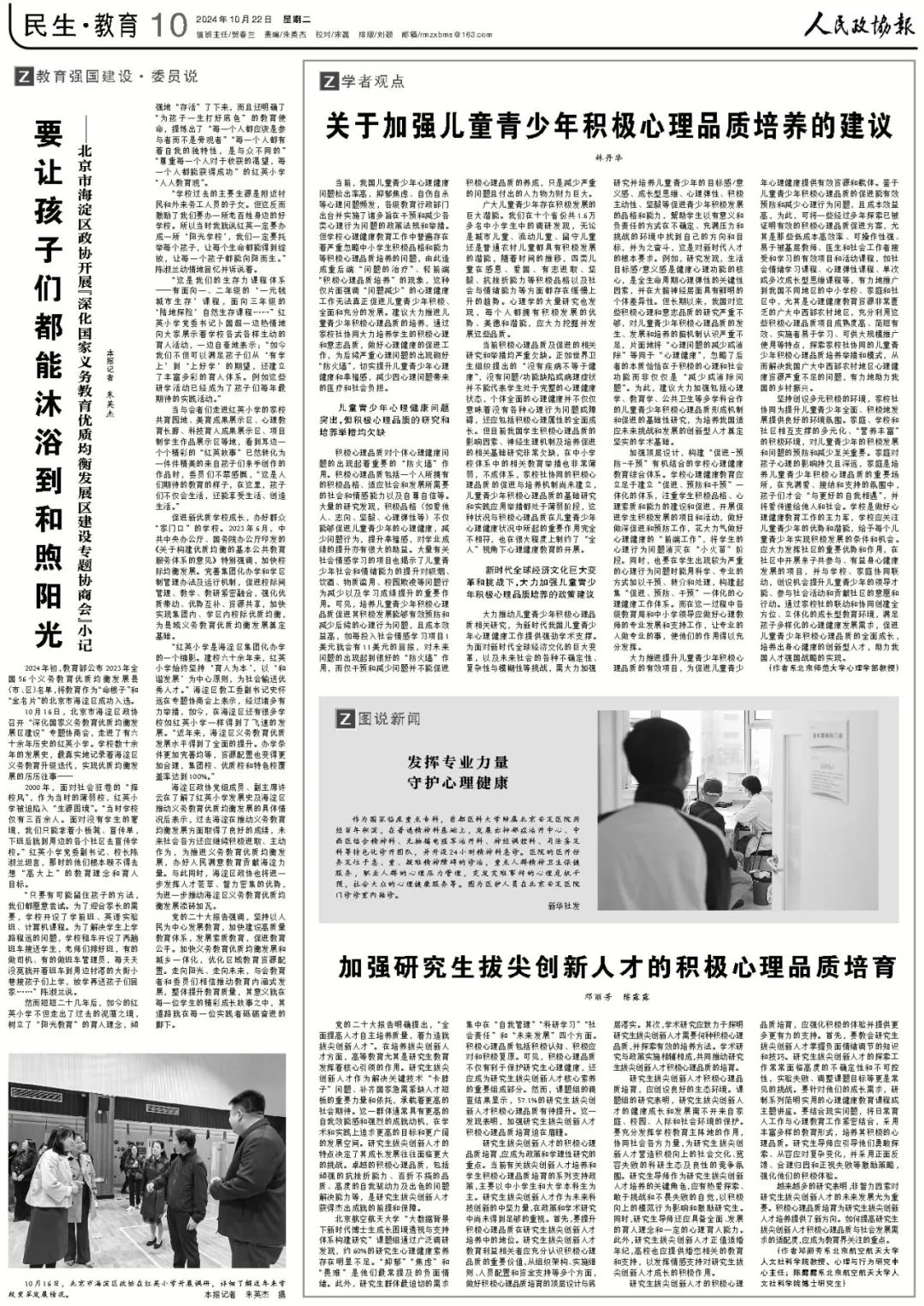 党的二十大报告明确提出,“全面提高人才自主培养质量,着力造就拔尖创新人才”。在培养拔尖创新人才方面,高等教育尤其是研究生教育发挥着核心引领的作用。研究生拔尖创新人才作为解决关键技术受限问题、补齐国家急需紧缺人才短板的重要力量和依托,承载着更高的社会期待。这一群体通常具有更高的自我效能感和强烈的成就动机,在学术和实践上追求更高的目标和更广阔的发展空间。研究生拔尖创新人才的特点决定了其成长发展往往面临更大的挑战。卓越的积极心理品质,包括顽强的抗挫折能力、百折不挠的品质、高度的自我驱动力及出色的问题解决能力等,是研究生拔尖创新人才获得杰出成就的前提和保障。