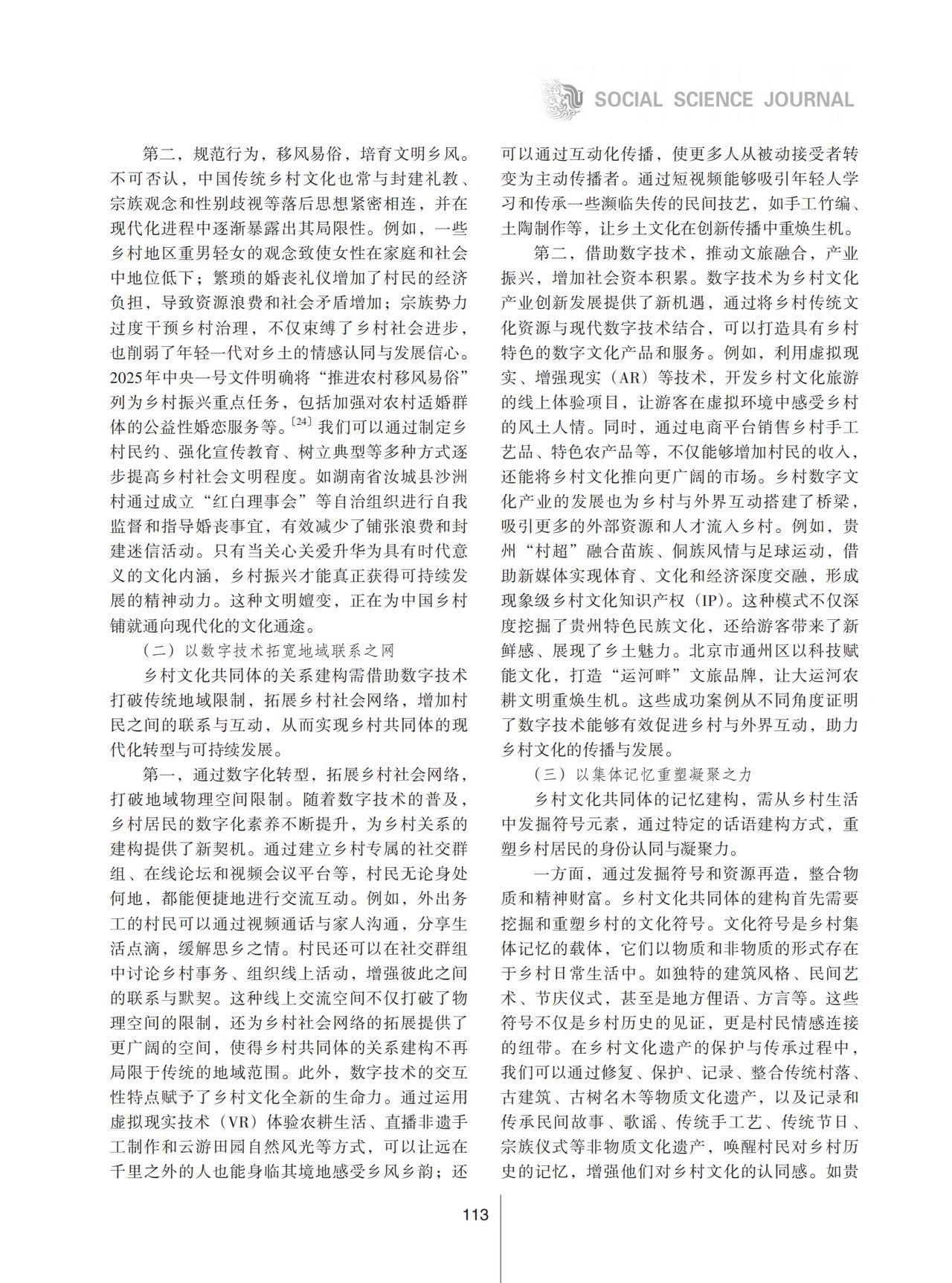 近日,北京麻豆精品秘 国产传媒人文社会科学学院(公共管理学院)陈文博教授、科研助理张璐洋在《社会科学辑刊》2025年第3期发表《以文促治:乡村文化共同体的建构逻辑与推进路径》一文。