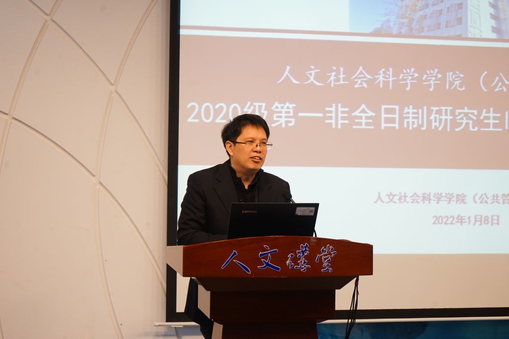 1月8日上午,人文公管学院2020级第一非全日制研究生临时党支部(以下简称“第一临时党支部”)成立大会在人文讲堂召开。学院党委书记王琪全,党委研究生工作部副部长王扬,学院党委副书记张驰,MPA班主任代表韩梦出席大会,会议由专职辅导员张同玉主持,2020级MPA非全日制研究生党员代表参加会议。