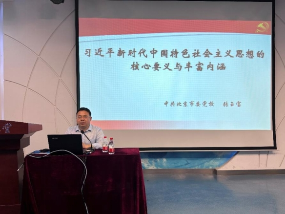 4月17日,人文社会科学学院(公共管理学院)铸魂育人系列专题党课2024年第2期在人文讲堂举行。中共北京市委党校北京党建研究基地研究员张玉宝老师作题为“习近平新时代中国特色社会主义思想的核心要义与丰富内涵”专题党课,党委副书记方志主持,学院师生党员和入党积极分子参加学习。