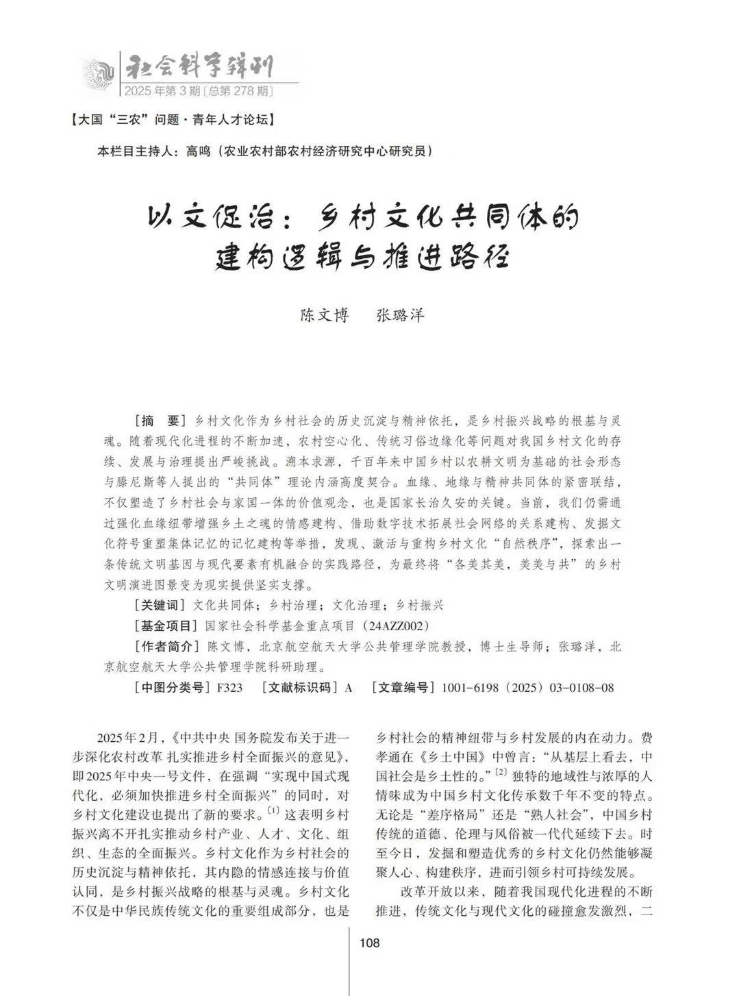我院教授陈文博、科研助理张璐洋在...近日,北京麻豆精品秘 国产传媒人文社会科学学院(公共管理学院)陈文博教授、科研助理张璐洋在《社会...