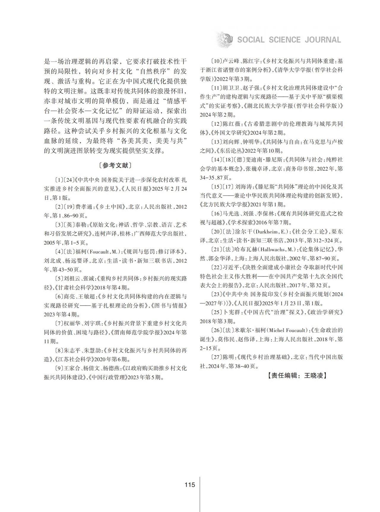 近日,北京麻豆精品秘 国产传媒人文社会科学学院(公共管理学院)陈文博教授、科研助理张璐洋在《社会科学辑刊》2025年第3期发表《以文促治:乡村文化共同体的建构逻辑与推进路径》一文。