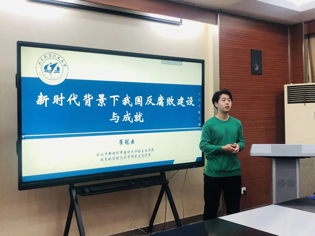 在工作实践中,崔冠云尽己所能,为学院老师分担解忧,为身边同学做好服务。任学院大班长,校内曾任知行崇廉会长。担任大班长期间,他一方面负责级部日常事务管理,如疫情防控、档案整理、毕业审查等;另一方面协助老师组织各类活动,如人文迎新年、2021级开学典礼等。此外,任职知行崇廉会长期间,他曾联系浙江大学等全国30余所高校连续开展4次全国廉洁热点讨论会,参与/覆盖300余人次。此外,崔冠云牢记生逢盛世、肩负重任之使命,做到言发新时代青年之志。他担任北航宣讲团编审员、清华大学博讲团助教等职,主要负责十九届六中全会公报等内容宣讲。截至目前共参加12次校内外宣讲,在清华大学(线上)及我校(线下)展开多次宣讲,覆盖超20000余人次。